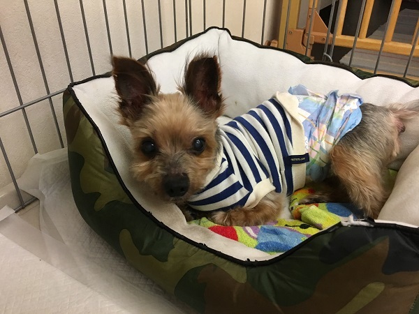 | 特徴(性格など) | ■特徴 仮の名前:しー太 ヨークシャーテリア♂ 推定10歳~ 体重3.15kg ■性格・暮らし ・とても怖がりで人見知りです。慣れるまでは少し時間をかけてみてあげてください。 ・お散歩は好きで、しっかり 歩きます。 ・足腰が少し弱くなっていますが、とても元気です。 ・対犬はそつなく過ごせます。 ・お留守番、就寝はケージで出来ます。 ・無駄吠えはありません。 ・トイレはシートの認識はありますが失敗もあります。 ■今までに行った医療行為 ・狂犬病予防ワクチン接種(5/23) ・6種混合ワクチン(7/1) ・フィラリア抗原検査(陰性)(8/1) ・検便(陰性) ・マイクロチップ挿入(9/12) ・健康チェック(9/13) ・血液検査(9/13) ・不妊手術(9/28) ・歯石除去(9/28) ・腫瘤切除(9/28) ■今後、行う予定の医療行為 特になし |