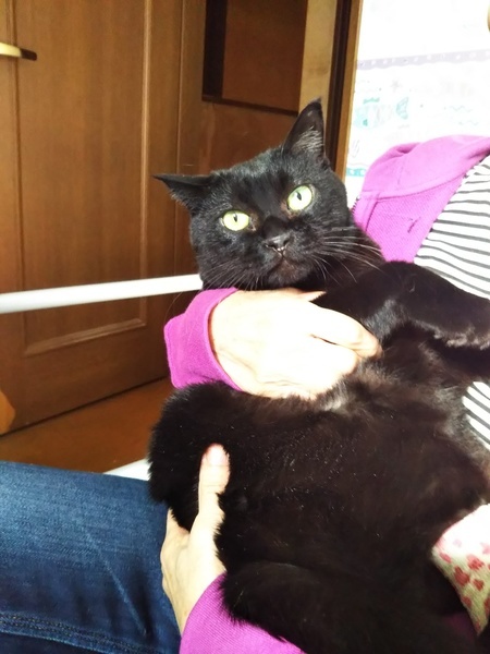 | 特徴(性格など) | 名前は"みるく"です。 真っ黒で年齢故にちょっとぽっちゃりしています。 人が大好きで、ごはんを食べているところを見ていて欲しいとおねだりする甘えん坊さんです。 病院でも暴れたりせず、じっといい子にしています。 おとなしい子ですので、若いやんちゃ盛りの猫ちゃんはちょっと苦手のようです。 |