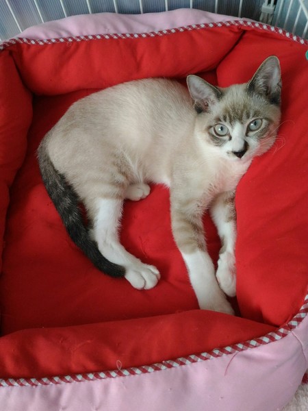 | 里親募集する理由 | TNR中に出会った子猫たちです。 このまま外での過酷な生活を子猫に強いるのは非常に切なく、家猫として幸せに暮らして欲しいと思い保護しました。 保護からしばらくして上腕の成長板が骨折している事がわかりました。 自然治癒していますが、綺麗にくっついたわけではありません。 上下運動は普通にしており生活に支障はありません。 |
