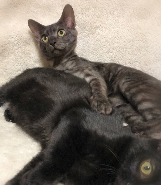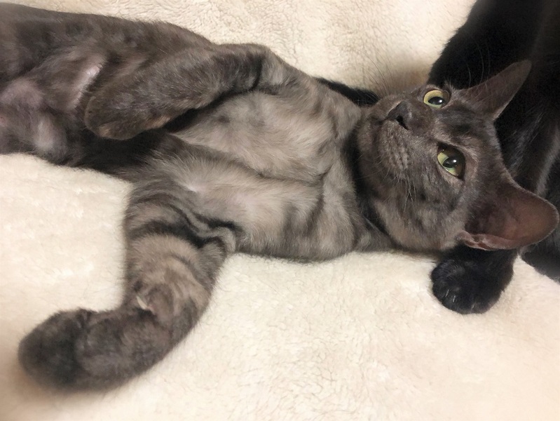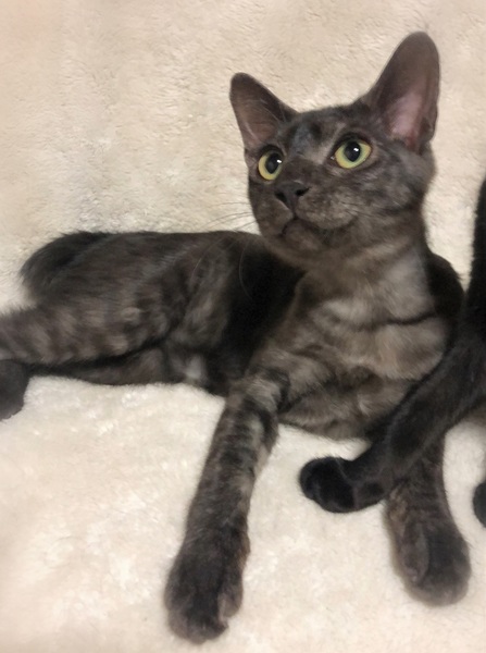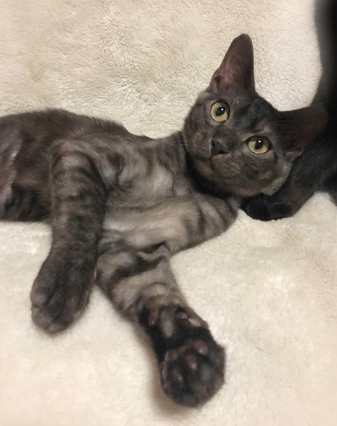 | 特徴(性格など) | 仮名、ぶんぶん 短めカギシッポ・季節によって濃さの変わる、スモークグレーの男の子。 環境に慣れるまで少し時間が必要です・・・が、知らない場所でも自分を取り戻すのが早い気がします。 初めて見る物を、じっと見つめる癖があります。 よく食べ追いかけっこをし、眠たくなると毛布をふみふみしながら眠ります。 |