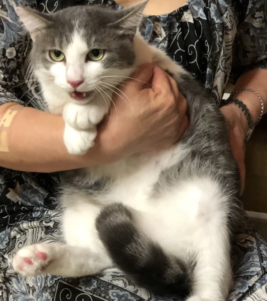| 特徴(性格など) | 白とグレーキジの模様で毛足の長いフワフワの子 体が大きいです 少し人見知りをしますので、触ろうとすると体を固くして固まっています 近づくとシャっといいますが、人に慣れてくると写真のように抱っこできます 人慣れは少しずつゆっくりなペースですが、よろしくおねがいします |