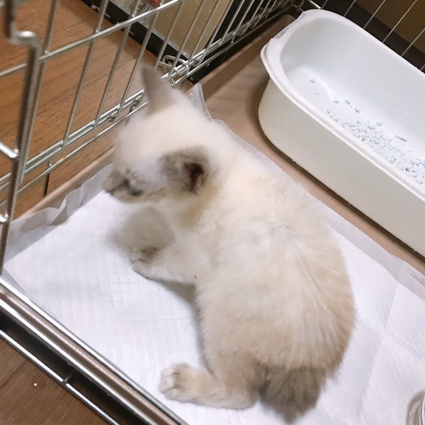 | 特徴(性格など) | 耳と尻尾がグレーで、目がとても綺麗なライトブルーです。 大人しいいい子です。 あまり暴れる事もなく穏やかで、膝の上に乗ってきたり懐っこい子です。 |