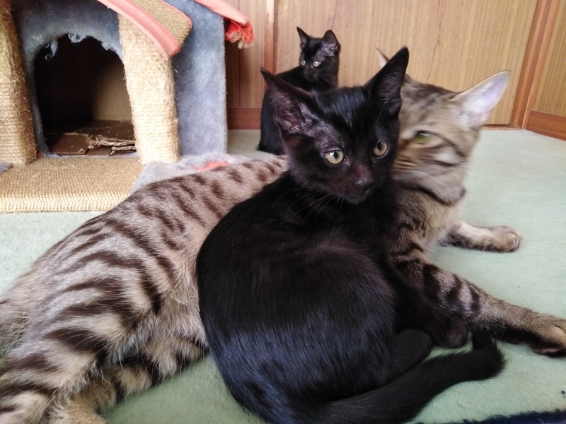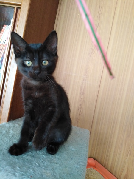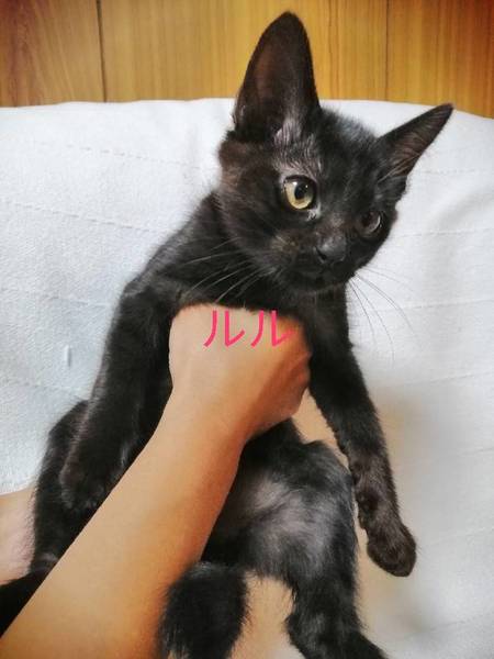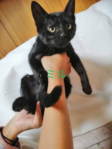 | 特徴(性格など) | 3匹ともメスの黒猫です。 2019/08/16生まれ 見分けがつくよう(ミル・チル・ルル)と仮の名前を付けています。 ミル…しっぽが美しくまっすぐしているのが特徴です。3匹の中で一番好奇心旺盛、活発、慎重、よく観察している賢い仔です。 チル…しっぽの先が少しだけ曲がっているのが特徴です。活発ですが、いつもママの近くにいる甘えん坊です。 ミル…3匹の中で一番茶色に近く、綺麗な毛をしています。しっぽの先が鍵状に曲がっています。性格はおっとりしていて、甘えん坊。3匹の中で一番人が好きで抱っこさせてくれます。 【健康状態】 母子ともに完全室内飼いなのでダニ、蚤などもなく、耳疥癬にもかかっていません。 ママ猫はワクチン・否認済み 今も母乳を飲んでいますが、ドライフードにも移行を始めていて、よく食べています。毎日すくすく育っています。 トイレトレーニング済み |
