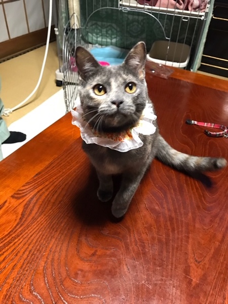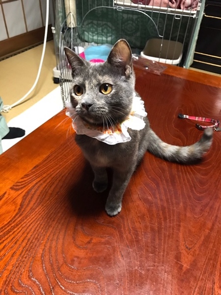 | 特徴(性格など) | とても元気で、運動神経抜群です。 現在の体重は2.85キロ 肩に乗るのが得意です。 グレーの色が強く、少しサビが入っています。 とても懐いていて、抱っこなどできます。 トイレしつけ済。 子猫のため、動きは俊敏で活発です。 人を選ばず、懐きます。 お名前を呼ぶと走ってきます。 ウイルス検査済(エイズ・白血病)陰性、ワクチン済、駆虫済、避妊済み(耳カットなし)、その他検査済。 |