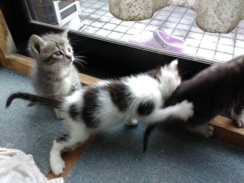 | 里親募集する理由 | 経緯:10月5日に、犬の散歩中に声が聞こえ、草むらを探すと水が底に残っている溝に、黒虎の女の子が落ちていました、身体の半分以上が水に浸かっていて、持った時点で冷え切っており親の帰りを待つのはあきらめました。その反対側の斜面に兄弟と思われる男の子が2匹必死に鳴いており、女の子を拾うならこの子達も、とまとめて3匹とも保護しました。一緒にいた周りの人にも聞いてみましたが引き取り手はなく・・・・ 現在犬を2匹、他にも生き物を飼育しているため、3匹を飼うことができません。離乳もでき、10時間ほど時間が開いてもお留守番ができるようになったので、里親募集をしたいと思います。 兄弟での譲渡、一匹での譲渡どちらでも大丈夫です。 ただしオス・メスの譲渡の場合は早い段階での避妊・去勢手術をお願いいたします。 |