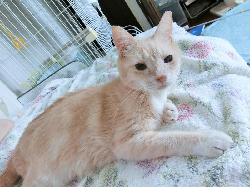| 里親募集する理由 | 餓死寸前で犬小屋のエサの付近で倒れていたのを犬が発見し、たらい回しになった末に私に押し付けられました。 猫風邪の後遺症で目が目やにで塞がり鼻も利かない→餌がとれない→飢餓で衰弱。この流れだと思います。 我が家には問題があり貰い手のつかない猫や、要介護の猫がいるため、これ以上の保護はどうしても困難です。また、一匹一匹を十分に可愛がることもできません。 |