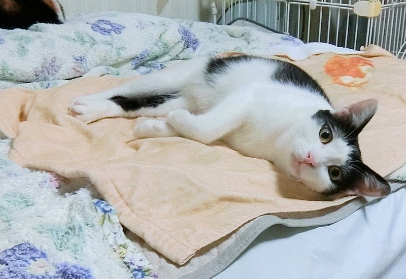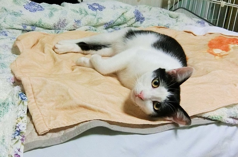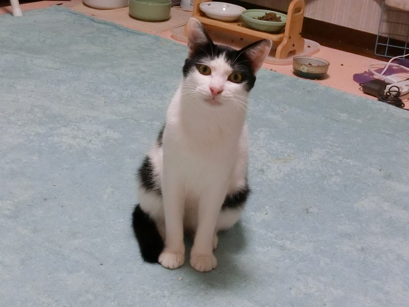 | 特徴(性格など) | 仮名は「ハッチ」という男の子です。 3種ワクチン、エイズ白血病検査(陰性)、去勢手術、駆虫、シャンプー、トイレの躾が済んでいます。 中肉中背、空気中にホワホワしない毛質なので掃除が比較的楽です。 顔は十段階で4くらいです。ビビリな性格と地味顔のためか兄弟で一匹だけ残ってしまいました。 運動量は平均的、遊び友達がいればよく動き、いなければ1人で遊んでいます。 人なれ具合は発展途上です。 人間が寝転がっていたり、座っていたりと低い状態なら好んで甘えてきます。 顔をよせればキスしてくれて、足にこっそりスリスリしたりします。 撫でると半々の確立でさっとわずかに距離をとります。抱っこはまだ難しいです。 数か月前は近寄ることもできなかったのでこれでも大きく進歩しています。 その内なれるだろうと放置してるタイプの人間には懐かないと思います。 声をかけてくれ、可愛がってくれる人にだけ心を開くタイプに見えます。 猫相手にはすごーく愛想がよくフレンドリーです。 誰とでも仲良くしようと自分から積極的に交流しにいきます。 遊び友達がいないと運動量が落ちヒマで人間の持ち物を漁ってイタズラに走るため、単独飼育にはあまり向かないです。 こんな状態なので本来まだ里子に出すには早いのですが、近い将来我が家で猫の飼育が不可能になるため、環境に順応しやすい若いうちにと、だめもとで募集に至った次第です。。 |