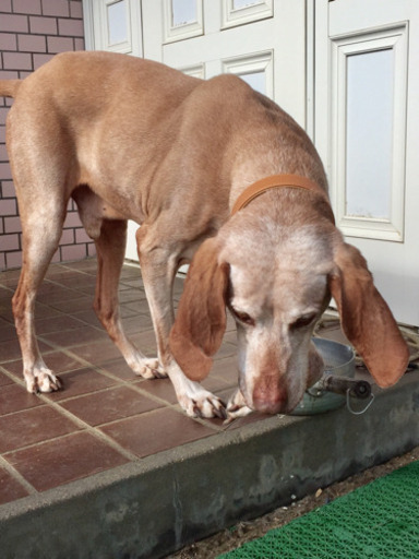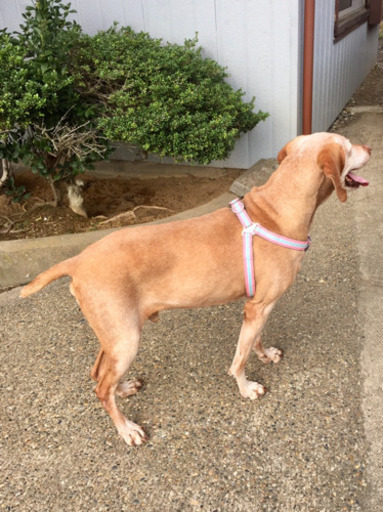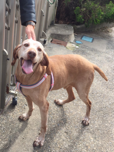| 特徴(性格など) | ハンガリアン・ヴィズラという国内では大変珍しい犬種です。 人懐こく甘えん坊な性格ですが、それゆえに嬉しくて飛びついてしまい、力が強く、食べ物への執着心が大変強く、手の届く場所に食べ物は置いておけません。 車酔いはありませんが吠え続けてしまいます。 まだまだ体力が有り余り、元気いっぱいですので、体力のある飼い主様にお願いさせていただければと思っております。 推定10歳になりますが、元気いっぱいで元気過ぎるほどです。 色はブラウンです。 |