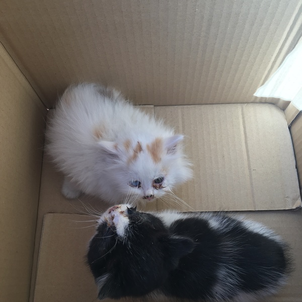 | その他(譲渡条件など) | 先着順です。2匹います。 どちらか片方でもいいです。 1.オッドアイの雑種洋三毛猫メス。 2.白黒雑種性別不明 取りに来られる方。 |