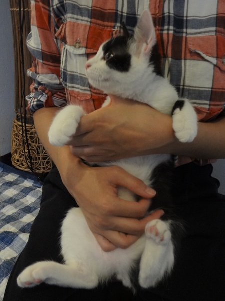 | 特徴(性格など) | くっきりハチワレの美猫です。 洋猫が混じっているのかきょうだいの中で一番毛並みがふわふわで柔らかく、も こもこしてます。 他の大人猫とも仲良くできます。 食事:ドライフード トイレ:失敗なし 爪切り:できます エイズ・白血病:陰性 ワクチン:2019年10月27日接種済 |