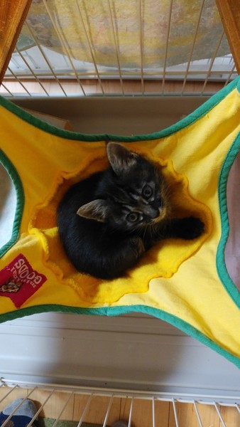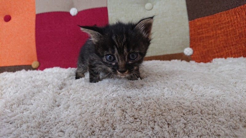 | 特徴(性格など) | 毛色:キジトラ 性格その他:兄妹で一番小柄だった『こだま』ドライフードもモリモリ食べられるようになり 順調に大きくなっています。膝の上でコロコロ遊ぶのが好きです♪ |