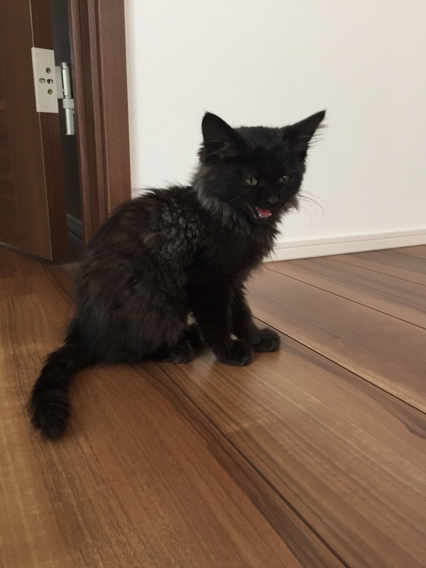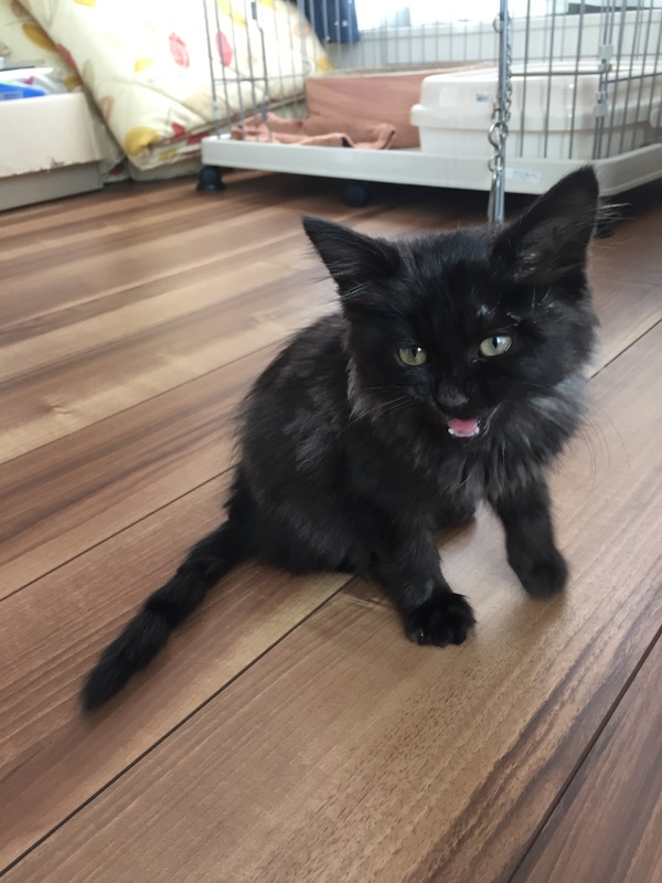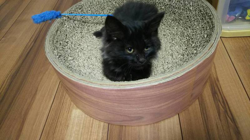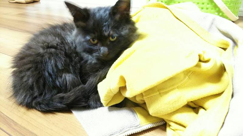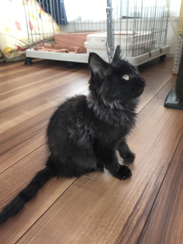 | 特徴(性格など) | 黒色と灰色の混じった珍しいタイプの長毛の黒猫ちゃんです。とても甘えん坊さんで膝に乗ってきてフミフミしています。 | ||