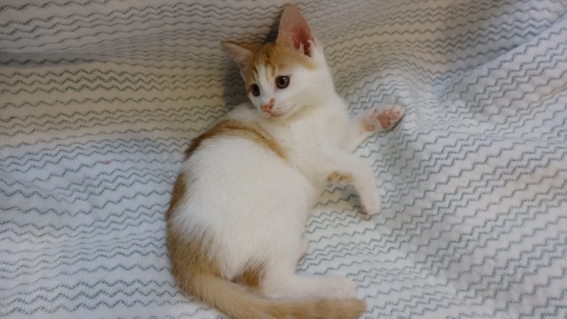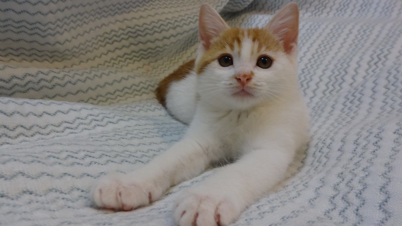 | 特徴(性格など) | 【仮名】きなこくん 【性格】超甘えん坊で元気いっぱいです☆人間も猫ちゃんも大好きな仔です☆ ご飯モリモリ食べて、おもちゃ遊びは大好き、スクスク育ってます(笑) 天真爛漫で無邪気☆【ゴロゴロ】が口癖です(笑) 月齢が幼い為、お留守番時間がない、もしくは少ない里親様に託したいと思います。 一緒に暮らしているてまりちゃんとのお迎えを希望します。 |