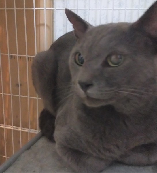 | 里親募集する理由 | 猫屋敷の周りで捕獲を試みていたところ、耳が血だらけになっている状態のパセリを発見し、優先的に保護しました。 純血のロシアンブルーにしか見えませんが、マイクロチップもなく、確認はできていません。 純血だとしても、捨てられたか逃げ出したかで、長年外にいたと思われます。 放し飼いの可能性もあったため、拾得物として警察に届けましたが、3ヶ月経っても飼い主は現れず、11月27日、私に所有権が移りました。 |