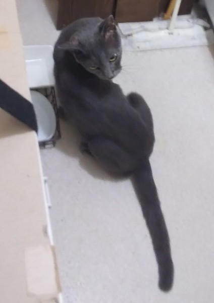 | 特徴(性格など) | 仮名:パセリ 毛色:グレー 瞳の色:うす緑色 尻尾:長くて真っ直ぐ 性格・特徴:最初は威嚇、ひっかき、噛みつきがひどく、噛まれて病院にかかったこともあり、小さなグレーの豹かと思うほどでした。 が、3か月経った現在では撫でられるところまできました。 「こっちも撫でて」と体を押し付けてくる様子に、やっと家猫になれたんだなぁ、と感慨無量です。 まだたまに威嚇や甘噛みが出ることがありますが、どんな時に出るのかが分かりやすいので、嫌がることを避ければ威嚇されることなく過ごすことができます。 愛情を持って育てれば、充分に馴れる可能性があります。 名前を呼ぶとかわいい声で返事をしてくれることが多いです。 手からおやつも上手に食べられます。 システムトイレのしつけ済み。 攻撃的な猫は苦手ですが、優しい猫なら先住ちゃんがいても大丈夫です。 うちの防衛隊長がパセリを攻撃するため、現在は洗面所だけで生活している状態で、たまに運動させるにも玄関までの狭い場所です。 なるべく早く里親さん宅に行き、ゆっくりと馴らしていただくのがベストだと考えています。 |