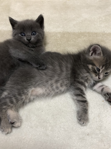| その他(譲渡条件など) | 費用はいりませんが、現在1匹トラ模様がある子が、真菌の治療中です 念のため、2匹とも投薬中です 引き続き投薬をお願い出来る方 先住猫ちゃんにうつる可能性もある為、先住猫ちゃんが居ない方の方が安心だと思います トラ模様の子だけ、少し毛が抜けて瘡蓋になっていますので、少し完治まで時間がかかりそうです それ以外は、とっても元気です! そろそろ2カ月になりますので ワクチン接種もお願い致します レボリューション済 真菌の治療薬も、まだあります 1日1回投薬お願い致します |