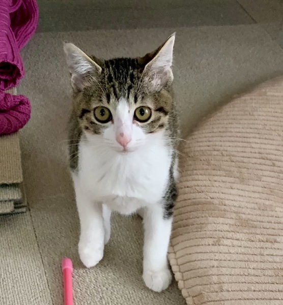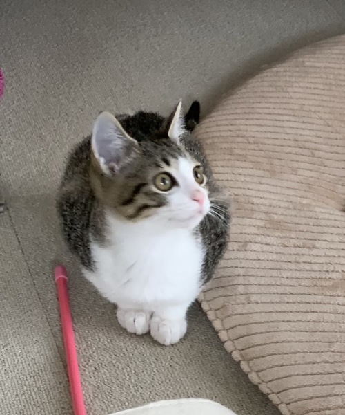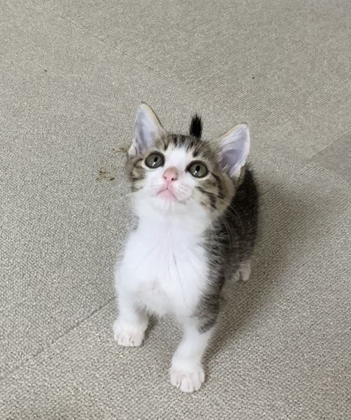 | 特徴(性格など) | お目々パッチリ、とっても可愛い男子です。 ネコジャラシで遊ぶの大好きです! 気になる時は小首を傾げる仕草が可愛いです。 寝てる時は撫でるとゴロゴロ言いますが、起きてる時は「何すんねん!」て顔します(笑)逃げませんが。 躾:爪切り、耳掃除OK、爪とぎ修行中。 |