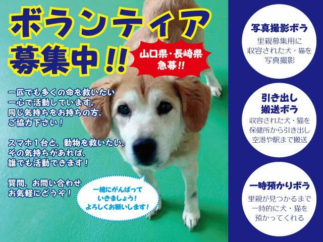 | その他(譲渡条件など) | ◆引き渡し方法 刻一刻と命の期限が迫っています。 温かい手を差し伸べて下さい。 尊い命です。 県外、遠方でも、良縁に恵まれましたら引き出しや空輸、搬送など出来る限りの範囲内になりますがボランティアがお手伝いさせて頂きます、ご相談下さいませ。 ※譲渡後の幸せを真剣に願い、アンケートにご協力をお願いしております。↓お問い合わせ時にコピーペースト、もしくは箇条書きや番号順に回答で構いません、宜しくお願い致します! お答え頂けない方、アンケート内容が曖昧な方へのお返事は致しかねますので予めご了承くださいませm(_ _)m ↓ ↓↓↓↓↓↓↓↓↓↓↓↓↓↓↓↓↓↓↓↓ ①-----どちらに(○県○市)お住まいですか? ②----- ペットの飼育経験はありますか? (種類、飼っていた時期など) ③----- 先住ペットの有無とその性別・年齢・性格を教えてください。 又、去勢、避妊手術はお済みですか? お済みでない場合はその理由を教えてください。 (不妊手術にご了承いただける方のみとなります) ④-----先住動物と相性が悪かった場合はどうしますか? ⑤-----御自宅は持ち家、賃貸のどちらになりますか?賃貸の場合ペット可の証明書が必要となりますのでご提示をお願い致します。 ⭐️マンションにお住まいの方は10kg以上の犬の飼育が可能な物件であるかを、必ず事前にご確認の上ご応募くださいませ。 ⑥-----室内フリー飼育は可能ですか? 室内飼育以外の方はご遠慮ください。 ⑦----- 動物と一緒に暮らすご家族、ご本人のご年齢と、ご職業を教えてください。 ⑧-----この子を主にお世話する方はどなたになりますか? ⑨----- お留守番の平均時間はどの程度ですか? ⑩-----旅行など長期にわたって家を留守にする場合犬をどうされますか? ⑪-----安価で粗悪なフードを避け、良質なフード、プレミアムフードや手作り食で犬の健康に気を付けて頂けますか? ⑫----- 脱走防止対策として二重扉、 首輪と胴輪、迷子札装着、慣れる迄は外出時にはダブルリード、をお願いしておりますがご了承いただけますか? 万が一、脱走させた場合はこの子を更に苦しめる事になり、土地勘のない場所での脱走は死にも値します。くれぐれもご注意願います。 ⑬-----譲渡後、不妊手術、毎年のフィラリア、狂犬病予防、混合ワクチン等の健康管理を必ずして頂けますか? 証明書の写真を拝見させて頂きます。 ⑭-----最寄りの動物病院について把握していますか? ⑮-----万が一病気や皮膚疾患などがあった際には惜しみなくきちんと治療し、健康管理をして頂けますか? ⑯-----もし今後、自分や同居人が新たにアレルギーを発症したり、結婚や出産などで増えた家族がアレルギーだった場合、 迎え入れたペットがどうしても飼えなくなった場合にはどうなさいますか? ⑰----- 数ある里親募集の中からこの子を希望して下さった動機と、終生愛情と責任を持って育てる覚悟を掲載者に伝えてください。 《その他質問など》 ----- ----- ----- ----- ----- ----- ----- ----- ----- ☆☆☆☆☆☆☆☆☆☆☆☆☆☆☆☆☆☆☆☆☆☆☆☆☆ ☆☆☆☆☆☆☆☆☆☆☆☆☆☆☆☆☆☆☆☆☆☆☆☆☆ 犬を飼養飼育していく為には日々、食費、医療費、トイレシート以外にも経済的に費用がかかります。毎日、適度な運動とお散歩も必要となります。 時には吠えたり、いたずらをして困らせることもあるかもしれません。 人間と同じ様に、年を取れば介護も必要となります。 可愛い可哀想というだけの安易なお気持ちでのご応募は犬にとっても幸せな事ではありません。深い愛情と責任を持ち終生室内飼育の出来る方のみのご応募をお待ちしております。 どうぞ宜しくお願い申し上げます。 ・持ち家、ペット可住宅にお住まいであること。 ・人間と同じく犬にも食費以外に医療費や諸経費が掛かりますので、飼養していくにあたり生計の立つお仕事をしていること。又は準ずる収入がある、もしくは収入のある ご家族がいらっしゃるご家庭。 ☆譲渡後、不妊手術、毎年の犬の狂犬病予防や混合ワクチン、フィラリアの予防、必要な医療にかけて下さる方。 病気や皮膚疾患があった際には惜しみなくきちんと治療し、健康管理をして頂ける方。 *安価で粗悪なフードを避け、良質なフード、プレミアムフードや手作り食で犬の健康を考え気を付けて下さる方。 ・完全室内フリー飼いで、脱走防止に努めてくださる方。首輪とハーネスに迷子札の装着をお約束して戴いております。 ★★★必ず室内飼育でお願い致します★★★ ☆大切な家族です。家族と同じく室内で一緒に過ごして下さる方で宜しくお願い致します。 外に繋ぐ、や、玄関やバルコニーで、ずっとゲージやサークルの中で、という飼育をする方は御遠慮下さい。 ・定期的に近況報告が可能で、こちらからのご連絡が取れる方。必ずその後の様子や可愛い写真などを時々メールやLINE等で連絡して下さる方、とても嬉しいです。 譲渡当日、翌日と1週間後、1か月後は必ず、写真、動画を