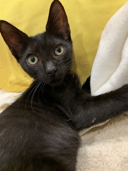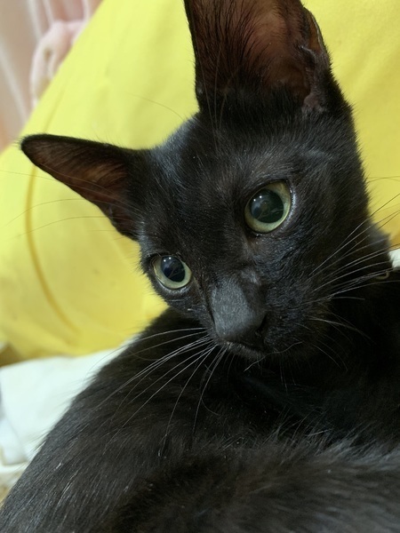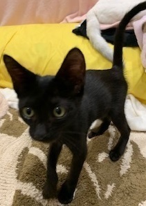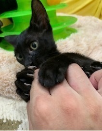| 特徴(性格など) | 「クランベリー」という名前の雑種(黒猫)の女の子です。 明るい性格で、遊ぶのが大好き。 まっすぐな長い尻尾が自慢の綺麗な猫です。 少し小ぶりな女の子です。 姉妹猫が同じシェルターにいます。 FIV・FeLV ともに陰性 |