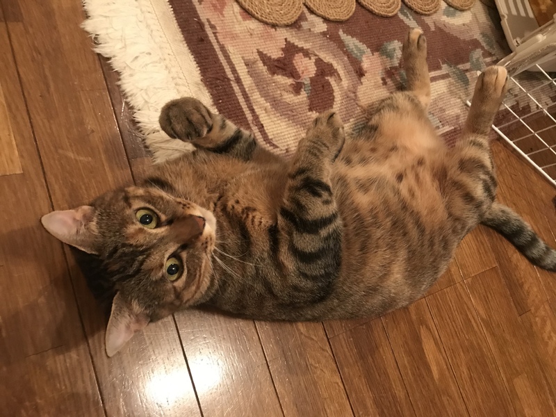 | 特徴(性格など) | ・キジトラ ・体重5kg(避妊手術して太っちゃいました!汗) ・誰か側にいてほしい甘えん坊 |