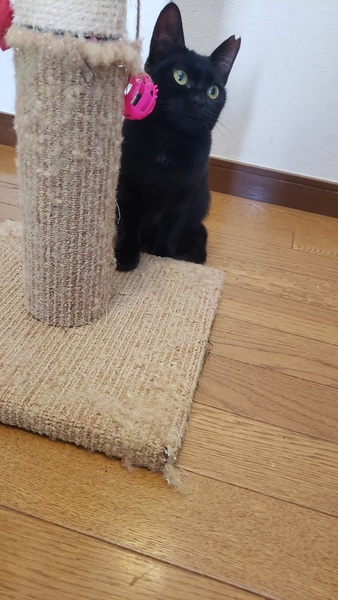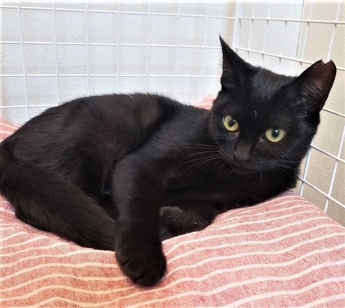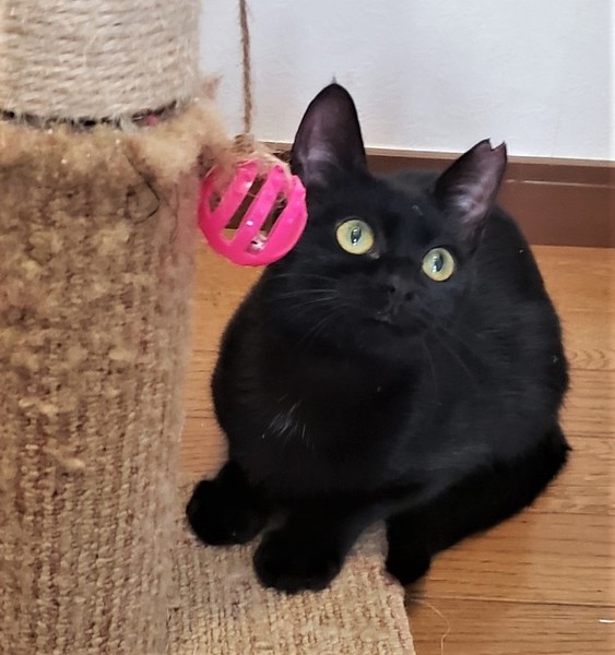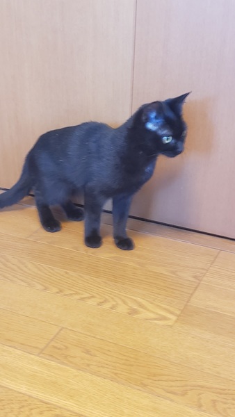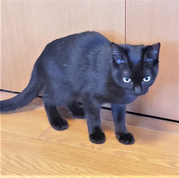 | 特徴(性格など) | 仮名: サマー(メス) 毛色: 黒猫 性格: 大人しく、威嚇もなく抱っこされて喉をゴロゴロさせてくれますが、自分から寄ってくる感じではないです。 ケージから広い所に出すと捕まえるのが大変です。 多分、もっと遊びたいのでしょうね。 じゃらしや大人猫と遊ぶのが大好きです。今は、成猫と同居ですので、先住猫がいるお宅で大丈夫と思います。 |