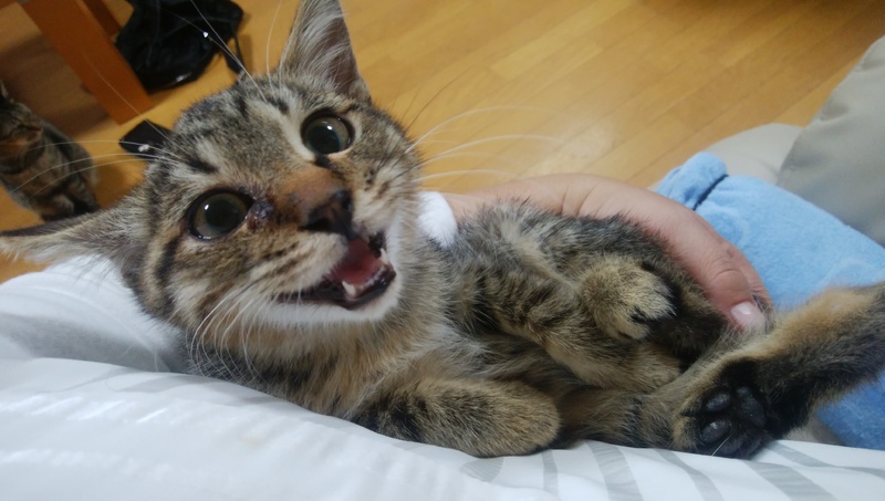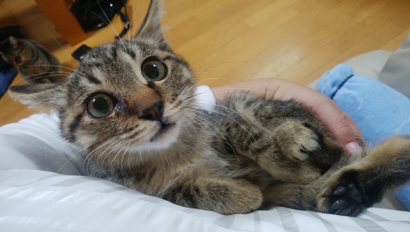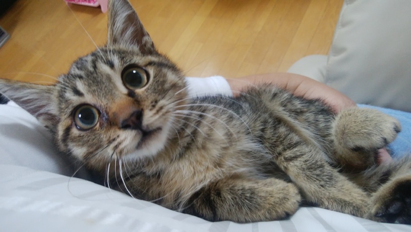 | 特徴(性格など) | キジトラ おっとり癒し系。なでるとゴロゴロ言います。 |