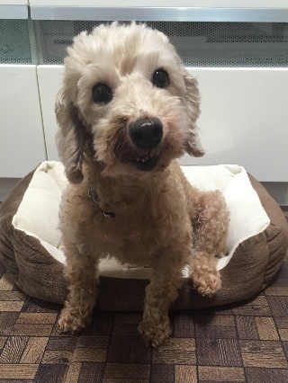 | 特徴(性格など) | ■特徴(仮の名前:ハロ) トイプードル♀ 推定8-10歳 体重3.6キロ ■性格・暮らし ・対人、対犬に攻撃性は見られません。 ・トイレ、お散歩は練習中です。 ・ケージでお留守番、就寝ができます。 ・ビビりですが甘えん坊です。 ・初期程度の心雑音あり。経過観察中です。 ■今までに行った医療行為 ・避妊手術 ・フィラリア抗原検査(-) ・血液検査 ・混合ワクチン接種 ・マイクロチップ装着 ・歯石除去(抜歯) ・耳ダニ検査 ・検便 |