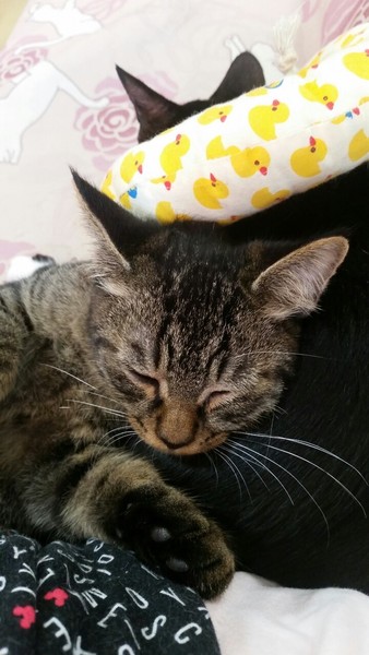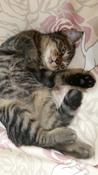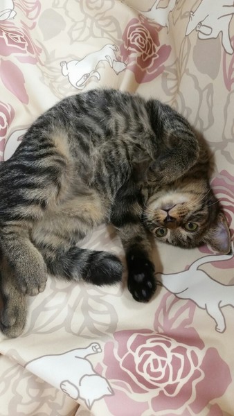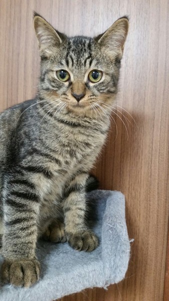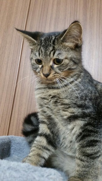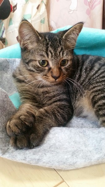 | 特徴(性格など) | 2019.6.21生まれ(推定) 毛色:キジトラ 顔は真ん丸で少しタレ目の泥棒フェイスの承太郎。 とても人懐こく、スリスリ・ゴロゴロな甘えん坊君。 歩くと踏みそうになるくらい、足にまとわりついてきます。 一緒にいると100%癒されます!! ケージ慣れ、人慣れ、猫慣れしています。 |