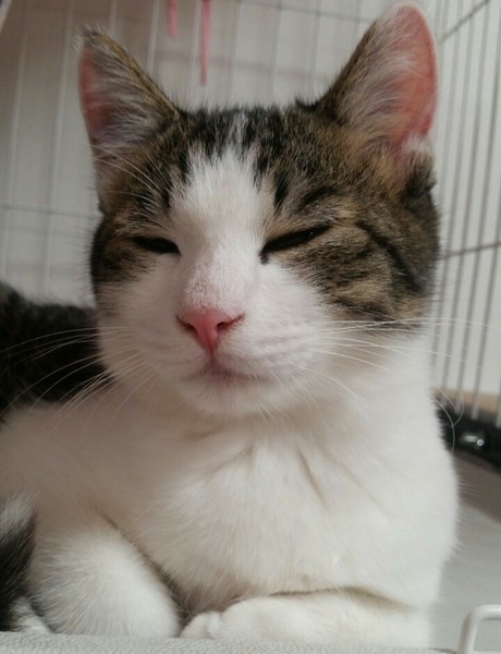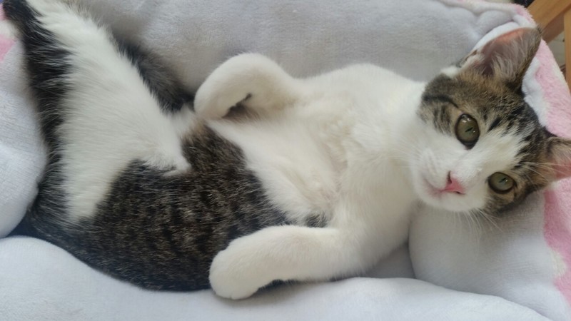 | 特徴(性格など) | 2019.6.21生まれ(推定) 毛色:キジ白 とっても人懐っこいスリスリ、ゴロゴロの甘えん坊君。 人のお膝の上が大好きで抱っこしていると、とっても癒されます! もういいよ~!ってぐらいにグイグイ甘えてきます(笑) 丸顔のイケメンなキジ白 仗助君。 ケージ慣れ、人慣れ、猫慣れしています。 |