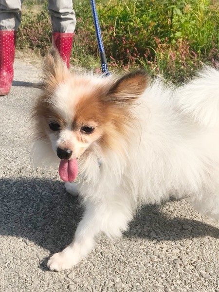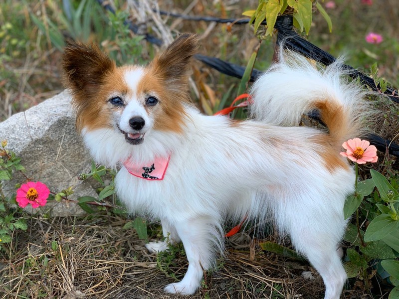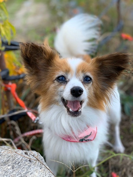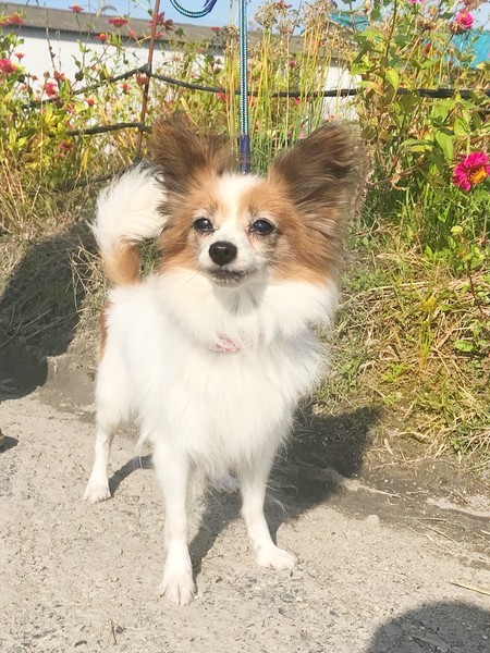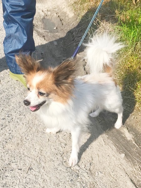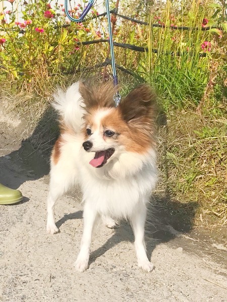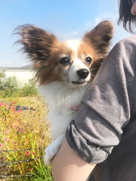 | 特徴(性格など) | 3キログラムのパピヨンの女の子です。おとなしく、いつも私たちに笑顔を振りまいています。 小さいお子さんもシニア世代のご家族さんも、安心して飼える落ち着いたこです。 |