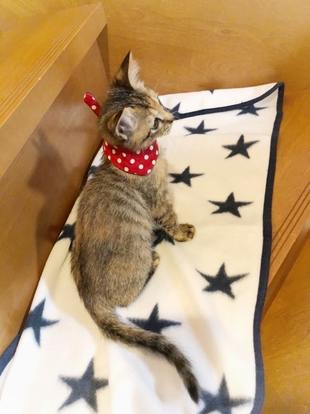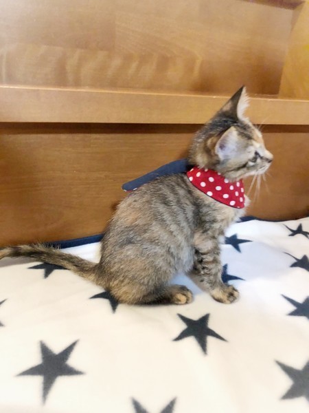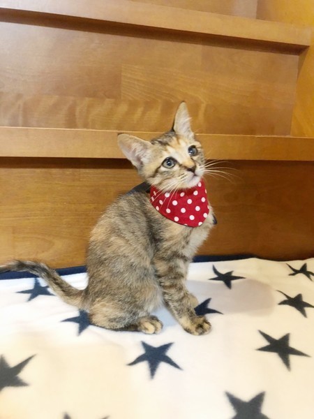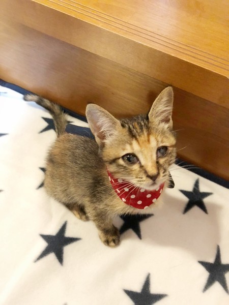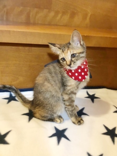 | 特徴(性格など) | 預かりさんにミルクで育ててもらっているため、人間が大好きで、とても慣れています。4兄妹で元気に遊んでいます。かわいいかりんちゃんに会いにきてください。 | ||