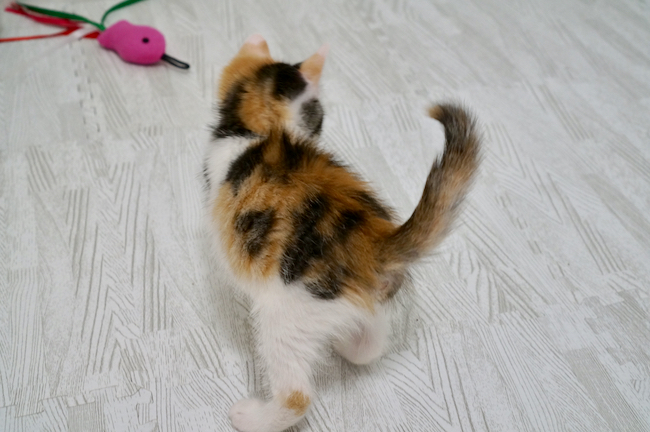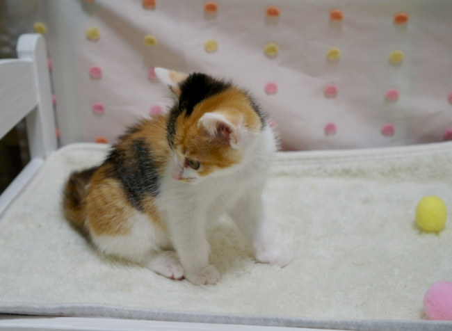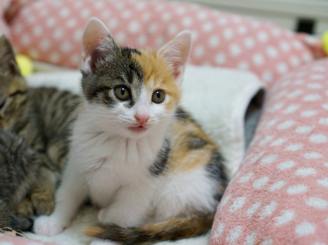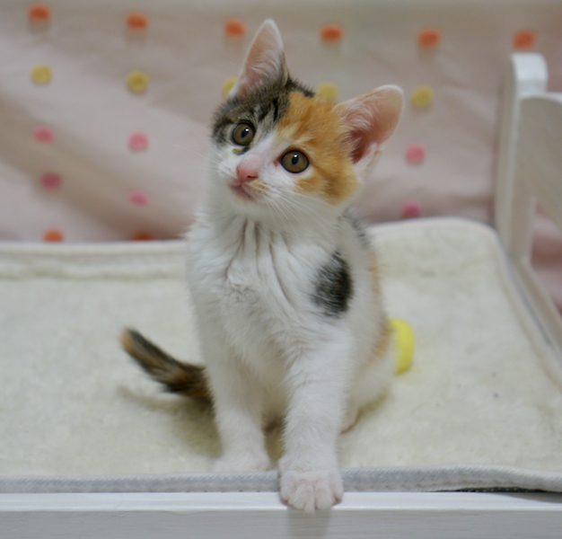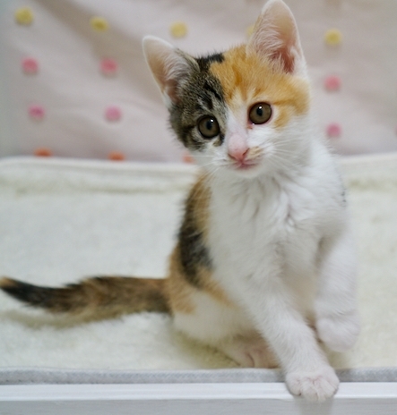 | 特徴(性格など) | 【お膝大好き♡超甘えんぼなみけみけ子猫:でんちゃん♪】 小さなお顔に大きなおめめ 明るいカラーのキャリコ(三毛)が可愛いでんちゃんは 生後1か月半ほどのみけみけ美幼女wです♪ すくすく元気に成長中で ぽてぽてのお腹や可愛いおちり(お尻)がたまらなくキュート!! 見た目も可愛いけれど それ以上に可愛いのが性格!! この月齢にして もうすでに「お膝大好きな甘えんぼちゃん」なんです! これはもう! 将来お膝を愛する超絶甘えんぼさんになること間違いナシですよ! 3姉妹ですので、 姉妹のうちの誰かと一緒のお迎えも大歓迎♪ですし でんちゃんの場合は 「甘えさせてくれる人間がいればそれで幸せ♡」というタイプなので お留守番時間が少ないおうちでしたら 1匹での譲渡も大歓迎です! (生後2か月のワクチンを打った後) 子猫の育て方や分からないことなどがありましたら トライアル中、正式譲渡後でも、 いつでもお気軽にお尋ねください^^ 全力でご家族とでんちゃんの幸せをサポート致しますので ご安心してお迎えください♪ 疑問・質問もお気軽に! 可愛い可愛いでんちゃんに、素敵なご縁がありますように!! ブログ「幸せの肉球」より でんちゃんたち姉妹の画像いっぱいご紹介ページ http://kabigonsatooya.blog.fc2.com/blog-entry-931.html http://kabigonsatooya.blog.fc2.com/blog-entry-928.html どうぞよろしくお願い致します! *** 健康状態 *** 良好です。元気いーっぱい☆ ●ワクチン1回目接種してからのお届け ●ノミダニ駆除済み ●駆虫済み ●検便(ー) ●ウイルス検査済み※ 猫エイズ(-) 猫白血病(-) ●パルボ検査済み (ー) ●耳掃除済み ●爪切り済み 現時点で必要な医療行為はすべて完了しております(*^^*) ※生後1ヶ月ですのでウイルス検査は確定診断ができません 上記は姉妹の中の1匹への検査ですが、 生後半年までは参考程度とお考えください。 ※ご家族になられる方に医療費の一部をご協力お願いしております。 (ワクチン1回済の子猫用5000円) ご自身で同等の医療行為をするよりはかなり安価となりますので ご理解・ご協力をお願い致します。 |