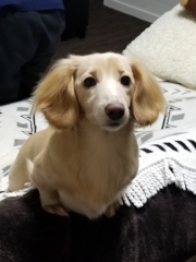 | 特徴(性格など) | Mダックスフント クリーム 人なつっこい、執着心が強め、爪切りが大嫌いなので自分でできない? |