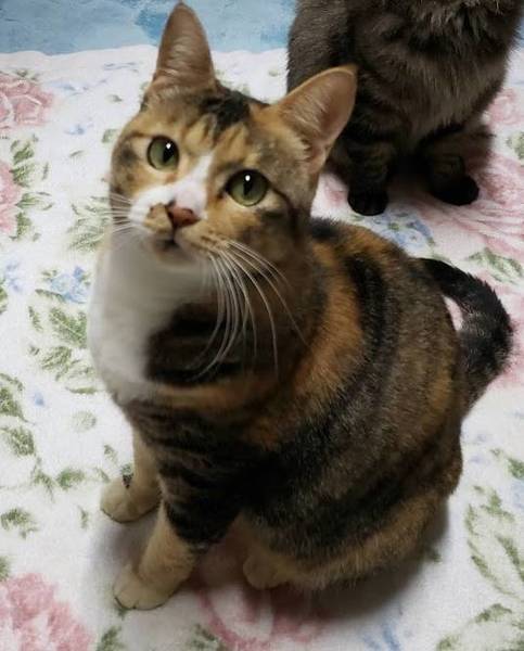 | 特徴(性格など) | 仮名: タンポポちゃん(メス) 毛色: 三毛 性格: 割と温和な子で他の猫とも仲良くしています。 マイペースで猫に興味がないのかもしれません。 人にスリスリするタイプではないですが触っても良いそうです。 食べる事が大好きなので、適度のおねだりに応えてあげて欲しいです。 |