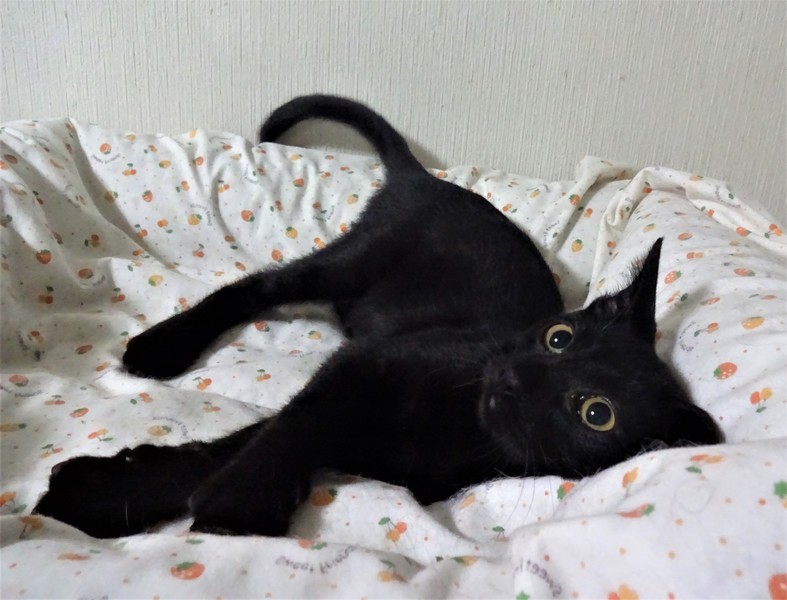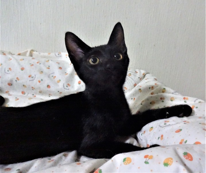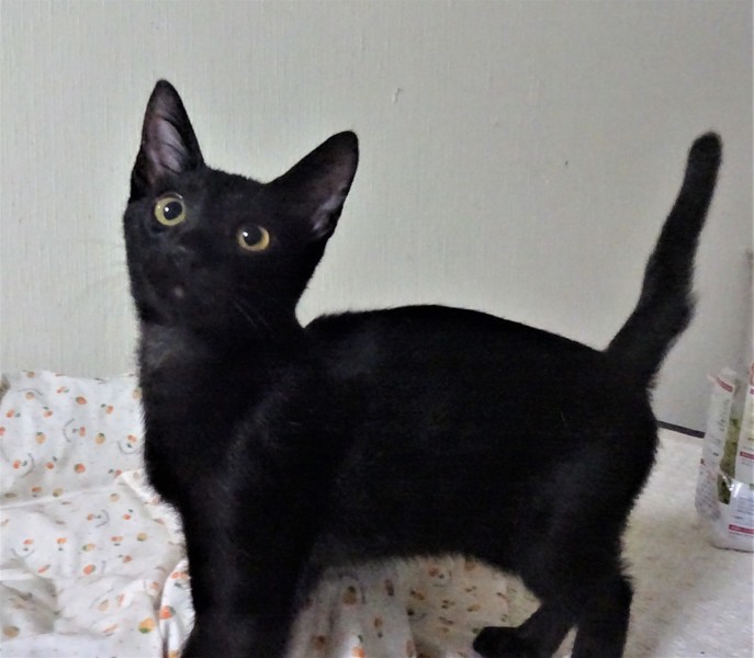 | 特徴(性格など) | 仮名: 大五くん(オス) 毛色: 黒、尻尾長い 性格: エジプトの猫のようにスレンダーな体つきです。 普通に食べていますが、なかなか太りません。 プロレス好きで、自分より小さい子と組みあって鳴かしています。 大きな子、小さな子、とのプロレスが好きですが、兄弟プロレスが一番ハードかもしれません。 じゃらしやおもちゃでも良く遊びます。 兄弟の鈴(すず)ちゃんと一緒のお家が希望ですが、1匹でも大丈夫です。 |