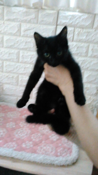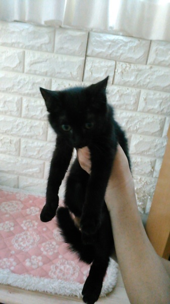 | 特徴(性格など) | 黒猫でおとなしい性格です。フードを良く食べ、元気に遊んでいます。 | ||