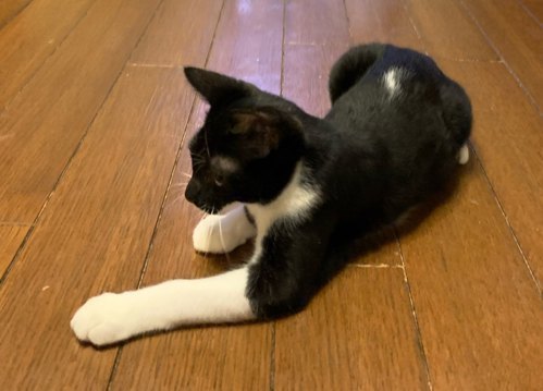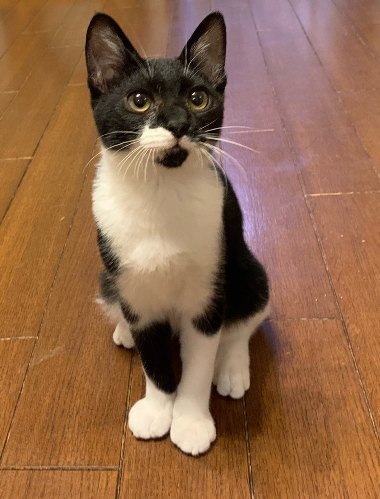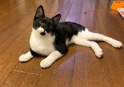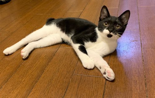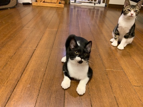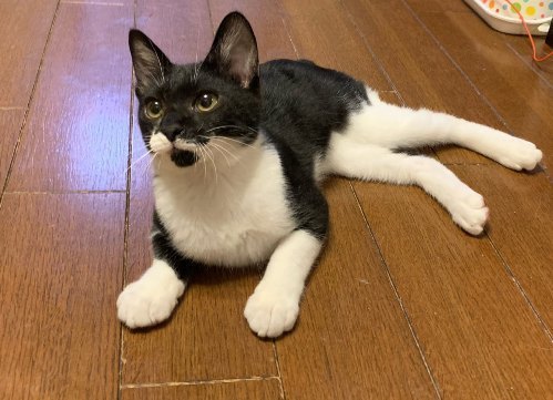 | 特徴(性格など) | 【仮名】しかまる 【性格】どんな猫ちゃんとも仲良く出来る協調性のある子です。 兄弟のちょうじくんと毎日元気にリビングを走り回りオモチャで遊んでもらうのも大好き! ゴハンはまだ積極的にオネダリ出来ず、ゴロゴロ言いながら近くまで『ください…』って言いに来るのですが、 『やっぱりいいです。。。』と控えめな態度がたまらなくカワイイです。 オネムの時に撫でてあげると爆音でゴロゴロ言います♪ ちょうじくんとしかまるくん2人で1つなので一緒のお迎えをお願いします。 |