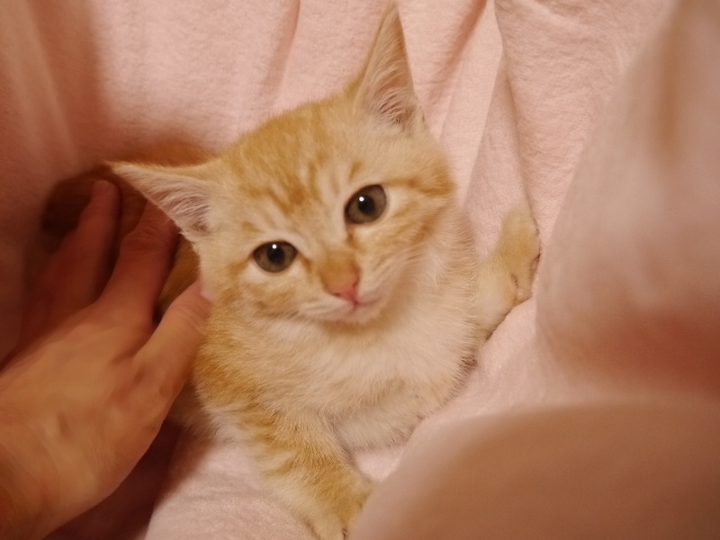 | 特徴(性格など) | 薄い茶色、クリーム色のトラ模様 保護してから2週間です まだ人を少し怖がるところがあり、ケージから出ると部屋の隅っこに逃げていきます ケージ飼育から始めて徐々に慣らしていただける方にお願いをいたします |