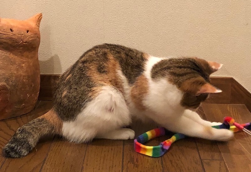 | 里親募集する理由 | 初夏のある日 生後2ヶ月ごろのミケちゃんを近所で見かけ、気にしてたところ 若い茶白の男の子と一緒に 駐車場に現れるようになりました。 最初は近づくと逃げていましたが ご飯をあげるうちに玄関に入ってくるようになり触れるようになりました。 外では怖い思いもして警戒していたのでしょう、安全な家の中ではスリスリゴロゴロと膝に乗りました。 強く噛んだり 手が出ることもなく 性格の良い愛らしい子です。 近隣は猫嫌いな家が多く 外では猫が生きていくのは厳しいです。 人が大好きな可愛いこの子は家猫として猫生を過ごしてほしい‥‥そう願い 避妊手術のため保護したのを機会に家に入れました。 一緒に暮らせれば良いのですが 我が家の猫たちは全員シニアで闘病中の子もおり 残念ながらどうしても「ミケちゃん」と暮らすことができません。 ミケちゃんのためのお部屋が用意できないため 今はケージで生活しています。 ケージから出たくてかまって欲しくて鳴きますが しばらくすると諦めます。 1日に数回 短時間ですがケージから出して遊んであげています。 ~~~~~~~~~~~ 愛情をたっぷりと注いでくださる方とのご縁を願っています。 *実は お外で暮らしている時、ミケちゃんにはナイト(騎士)がいました。冒頭お話しました茶白の男の子です。 1歳4ヶ月の子です。 近所は雄猫も多く、またタヌキなどの野生動物も時々現れ いつも体を張ってミケちゃんを守っていました。 茶白の男の子は性格の良い子が多いですが 気が優しく賢い子です。人馴れもしています。 この子も去勢手術を機会に 保護の予定ですが ミケちゃんと茶白くん、2ニャンを迎えてくださることも考えていただくと嬉しいです。 一緒に遊ぶので 外出中も寂しい思いをさせる心配もないですし、 猫団子になるなど 1ニャンより2ニャンの方が 人も猫も楽しくて幸せです。 猫が2匹 まったりしている光景は 心をとかし見飽きることがありません。 お問い合わせいただければ茶白くんの画像をお送りいたします。 |