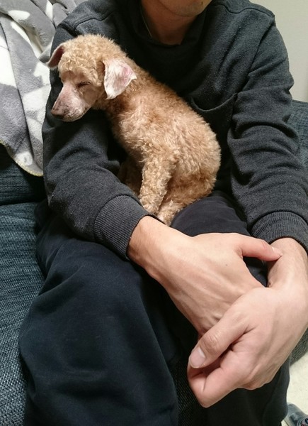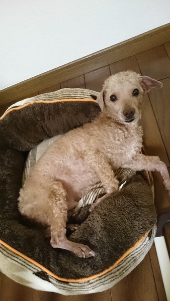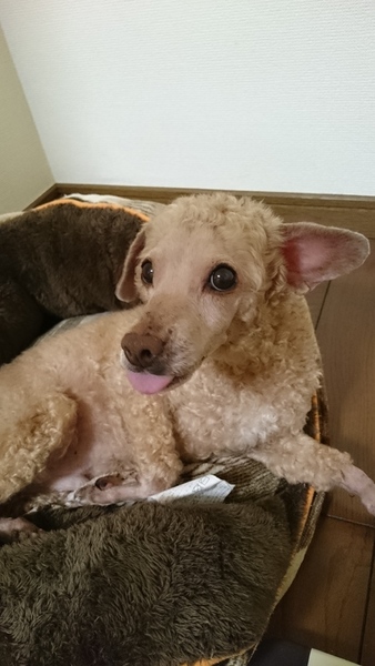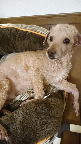 | 特徴(性格など) | 元々濃いブラウンでしたが淡い毛色になりました。 人懐っこく、甘えん坊です。 実家で飼われていましたが基本的にほったらかしにされて毛玉もひどく一度綺麗にトリミングしました。 話しかけると首をかしげて一生懸命聞こうとします。 12歳で老犬なので1日のほとんどを寝て過ごしますがまだまだ犬生折り返し地点です。 自分のベッドが一番好きなようです。 インターホンや郵便屋さんなど、外の物音に吠え続けます。来客は人によっては吠えます(特に男性)が女性には吠えません。 トイレは基本的にお散歩でします。 今は朝晩散歩しているのでトイレシートは使用していません。 トイレシートにする時は5回に1回くらいは失敗します。 胸にピンポン玉くらいの脂肪の塊がありますが、手術は必要ないそう |
