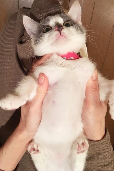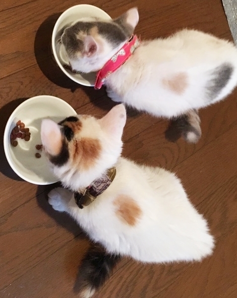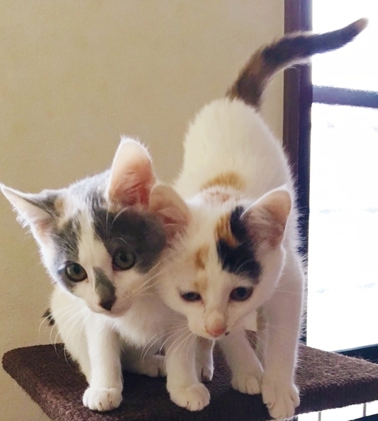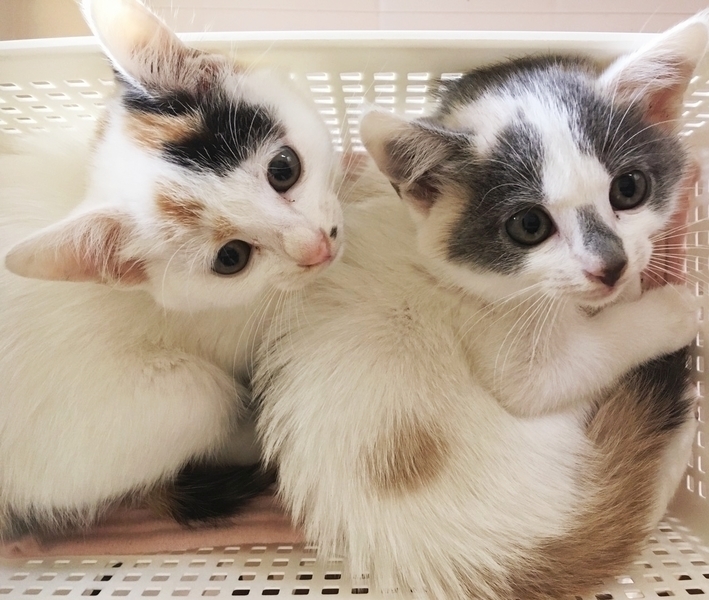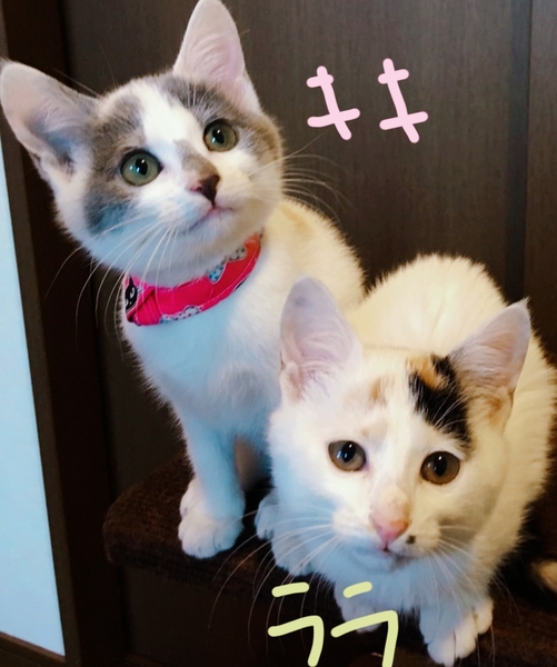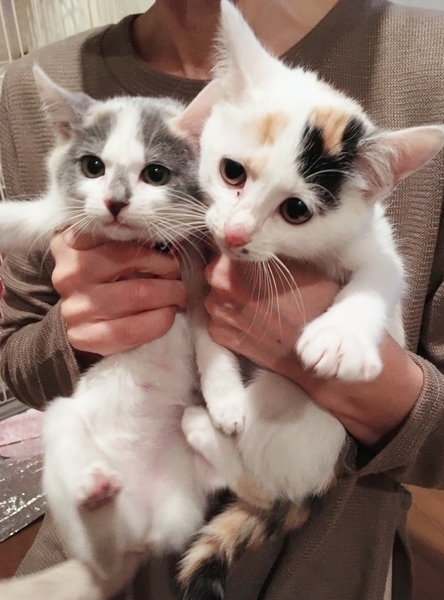 | 特徴(性格など) | 白が多めの顔に珍しいグレーの女の子と顔と尻尾に綺麗な三毛柄で 鼻にホクロが付いたようなキュートなお顔の姉妹です♡ 性格は、おとなしいですが子猫らしく好奇心旺盛な可愛い一面もあります。 |
