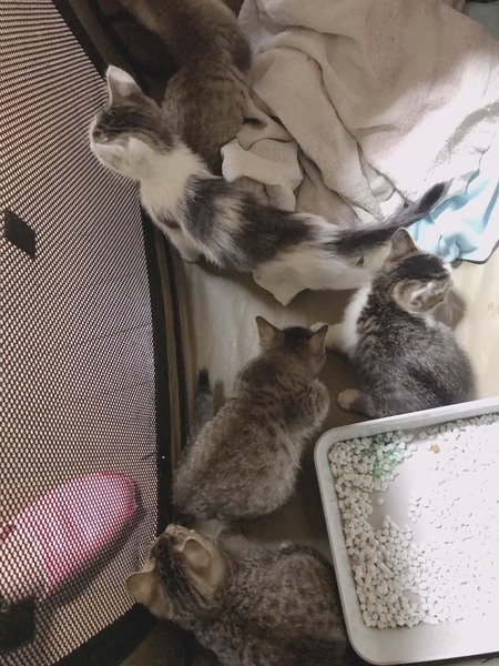 | 特徴(性格など) | キジトラ、白サバ 懐っこく喉をゴロゴロ鳴らす人に慣れてる子もいれば、少しビビリな子もいます。 皆攻撃性や威嚇等はなくお腹を出してくれる子もいます。 |