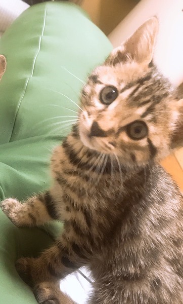| 特徴(性格など) | 母猫が純血のベンガル猫。 父親は、MIXです。 穏やかで、トイレも砂でもシートでも出来き失敗を1度もした事がない良い子です。 威嚇等もした事が無く遊びに夢中になるとワンパクですが、近づいただけで喉をゴロゴロ鳴らしたりスリスリする甘えん坊くんです。 保護当時コクシジウムがいて何回か通い完治させました。 お腹が弱いのでウンチが緩い時がありますが、整腸剤や乳酸菌を飲んだりすると落ち着きます。 再便検査の結果では、虫などみられませんでした。 猫はストレスに弱いのでそういった関係や子猫は消化器が未発達の為そういった関係もあるようです。 最後の2枚の外での画像は、母猫です。 |