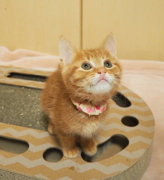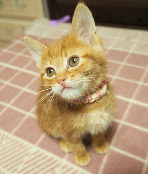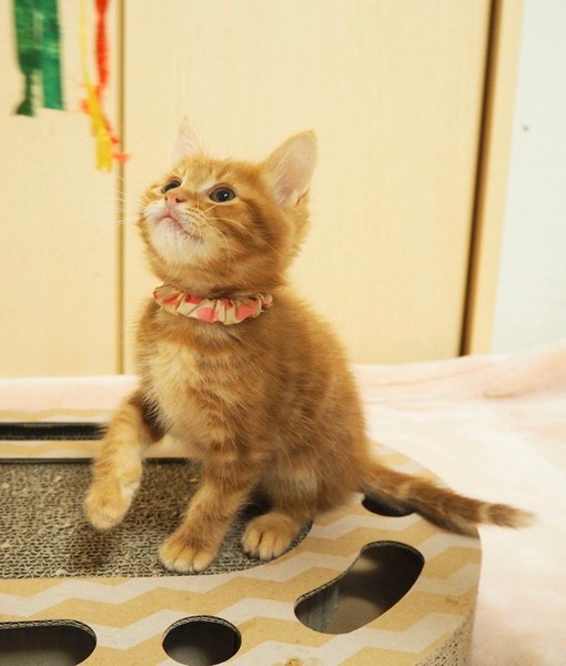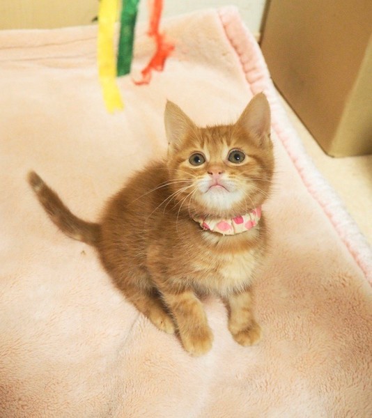 | 特徴(性格など) | 天真爛漫「ぼれ」くん♡ 人が大好き♪抱っこ大好き♪玩具で遊んで貰うの大好き♪人の傍でコロコロ大好きな甘えん坊です。 現在、ドライフードを置き餌として、栄養補給のため、一日3回程度のパウチを与えています。 <推定誕生日:9月始め> |