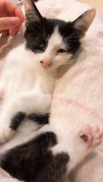 | 特徴(性格など) | 白黒模様の生後3~4ヶ月くらいの男の子 元気いっぱい甘えん坊で人懐っこい性格です。 |