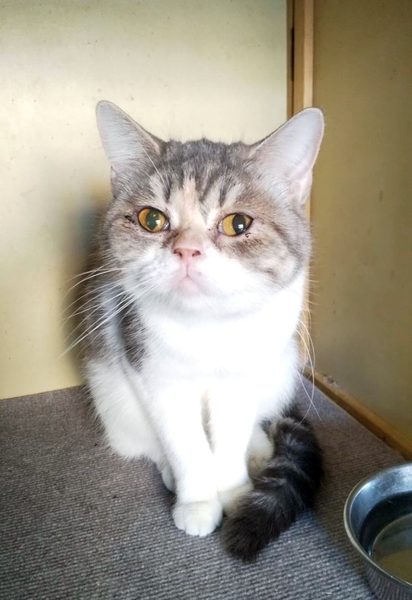 | 特徴(性格など) | スコティッシュフォールド(短毛) 色:キャリコ 名前は、パミュちゃん 体重 2.5kg ワクチン 接種済み レボリューション 済み 避妊手術は近日中におこないます 今まで人に触られたことが無いので、少し怖がりますが、ケージで暫く飼って頂いたら慣れてきます。 |