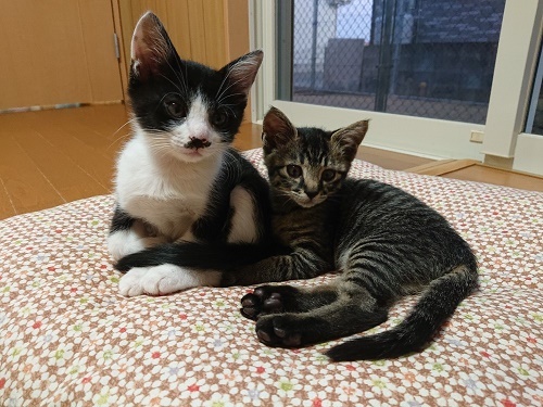 | 特徴(性格など) | 生後3週間で捨てられていました。 元気に遊んでます! 詳しくはブログやインスタグラム Twitterに載せています。 白黒のハチワレの男の子 とキジトラの女の子です。 メールでやり取りするより お店に直接きていただいたほうが わかりやすいと思います。 よろしくお願いいたします。 |