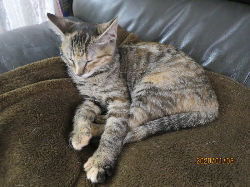 | 特徴(性格など) | 優しい色合いのキジさび猫、尻尾はまっすぐ長いです。 抱っこするとゴロゴロいいます。 |