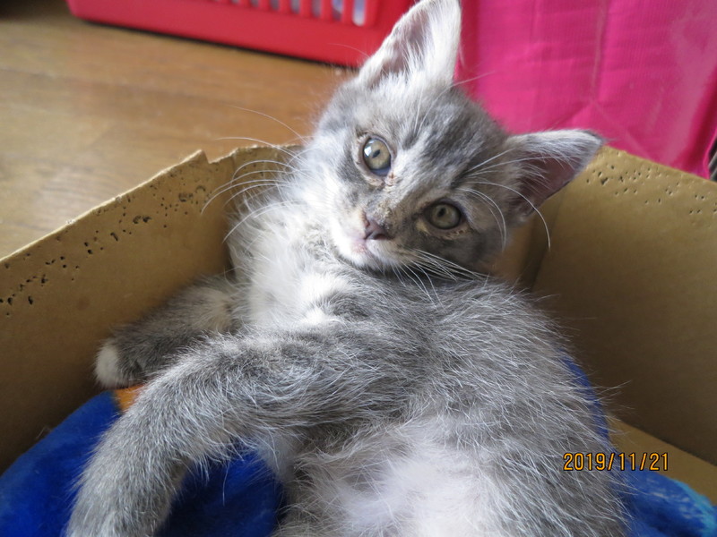 | 性別 | 猫 ♀ | 年齢 | 推定2か月 (2019/11/23 掲載時 ) |