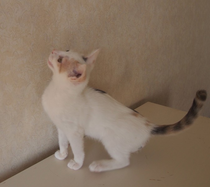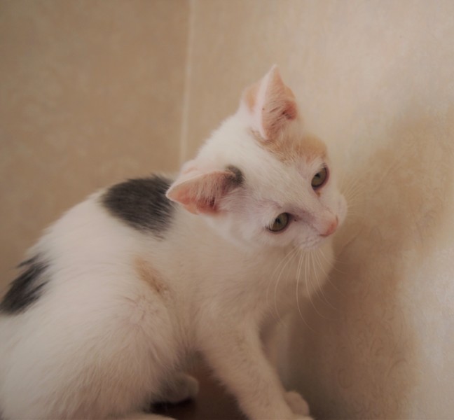 | 特徴(性格など) | 白三毛の女の子 仮の名前は「ターファー」 可愛らしい顔立ち 白三毛、顔やしっぽに茶色や黒色が入っています しっぽはまっすぐ とても活発で食欲旺盛 ひとなれも抜群で甘えたさんです 先住猫とも仲良く遊んでいます 「ターファー」の日常と当会の活動はこちらのBlogをどうぞ 「ヒトの暮らし猫との暮らし」 http://arasimuteki88.blog109.fc2.com/ |